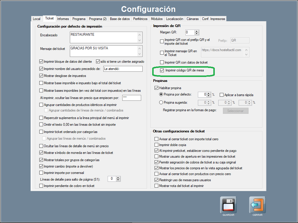 Para usar esta acción, primero necesitas habilitar la opción de imprimir código QR de mesa, en Panel de Gestión / Configuración / Configurar Opciones / Ticket, para que los tickets salgan con el código QR de mesa.