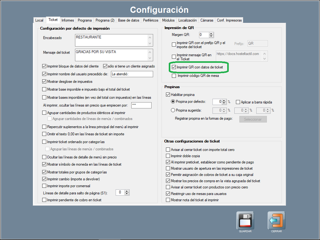 Para usar esta acción, primero necesitas habilitar la opción de imprimir QR con datos de ticket, en Panel de Gestión / Configuración / Configurar Opciones / Ticket, para que los tickets salgan con el código QR de ticket