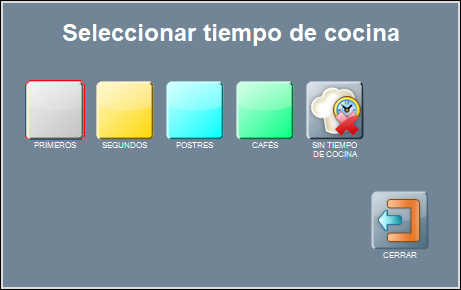 En esta ventana, pulsa sobre el tiempo de cocina que quieras enviar, lo que hará que se envíe a cocina un aviso de ‘Marchar’.