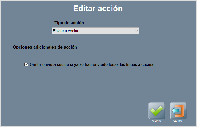 Importante: para usar esta acción personalizada, has de permitir el envío manual de un tiempo de cocina seleccionado, en configuración de tiempos de cocina (en Panel de gestión / Configuración / Gestión de cocina).