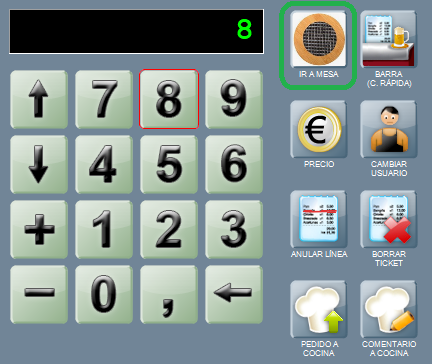 Para seleccionar una mesa por código, crea el botón personalizado, y tras escribir el código de mesa en el display, pulsa dicho botón, lo que abrirá la mesa seleccionada.