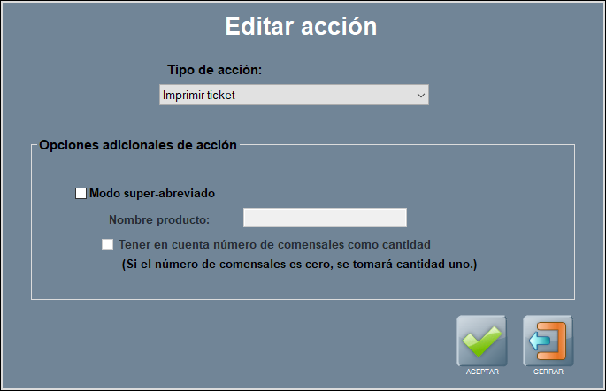 Esta acción hace lo mismo que la anterior, pero en este caso imprime un ticket, no un preticket.