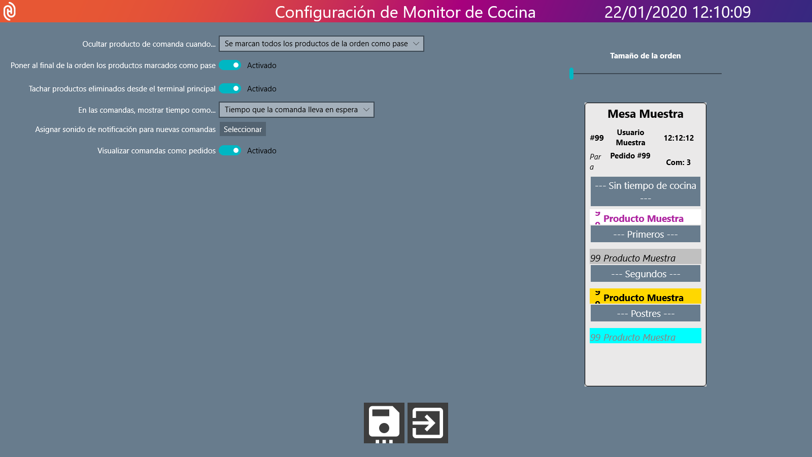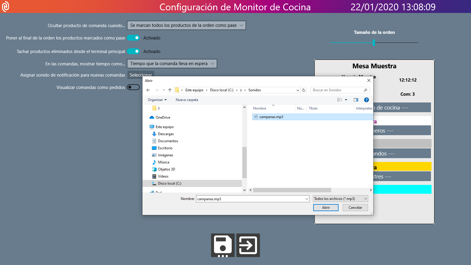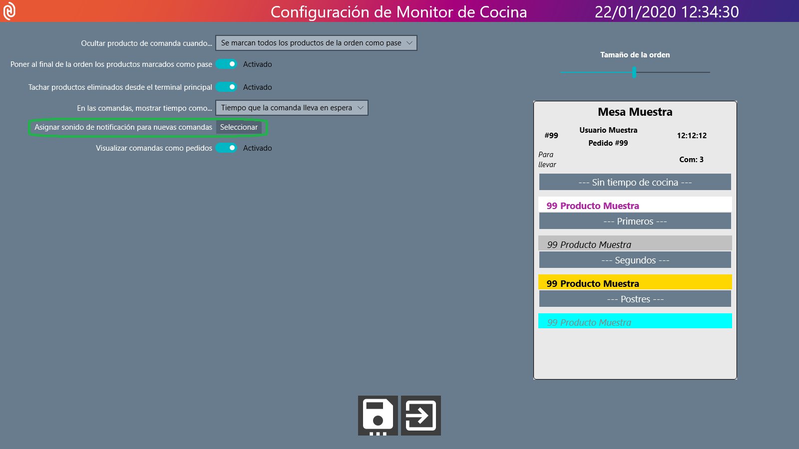 El monitor de cocina permite personalizar el sonido asociado a la notificación de nuevas comandas.