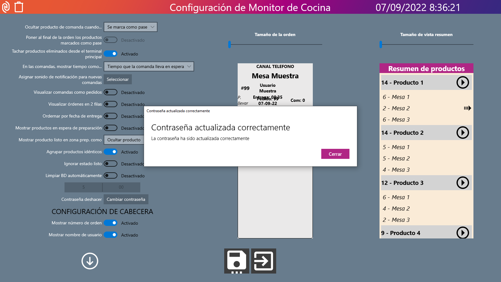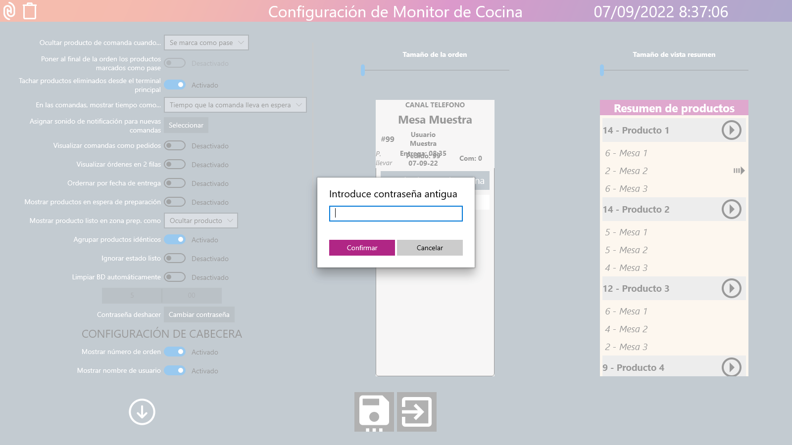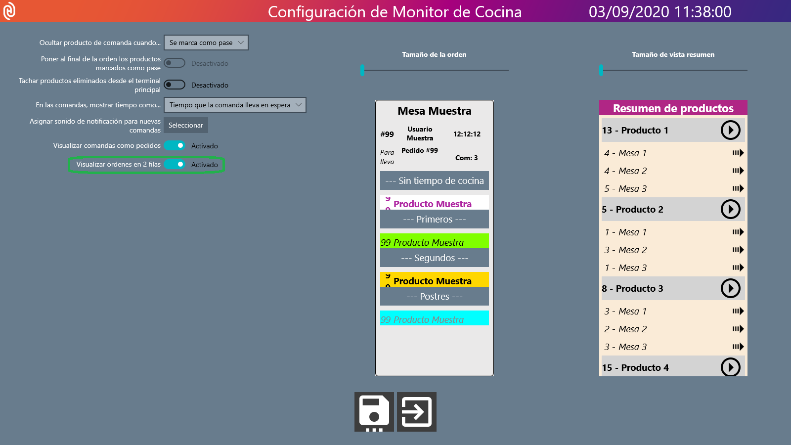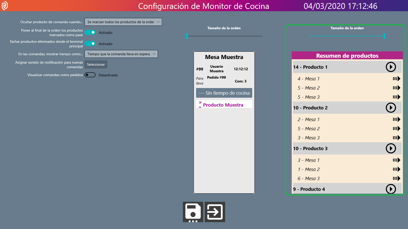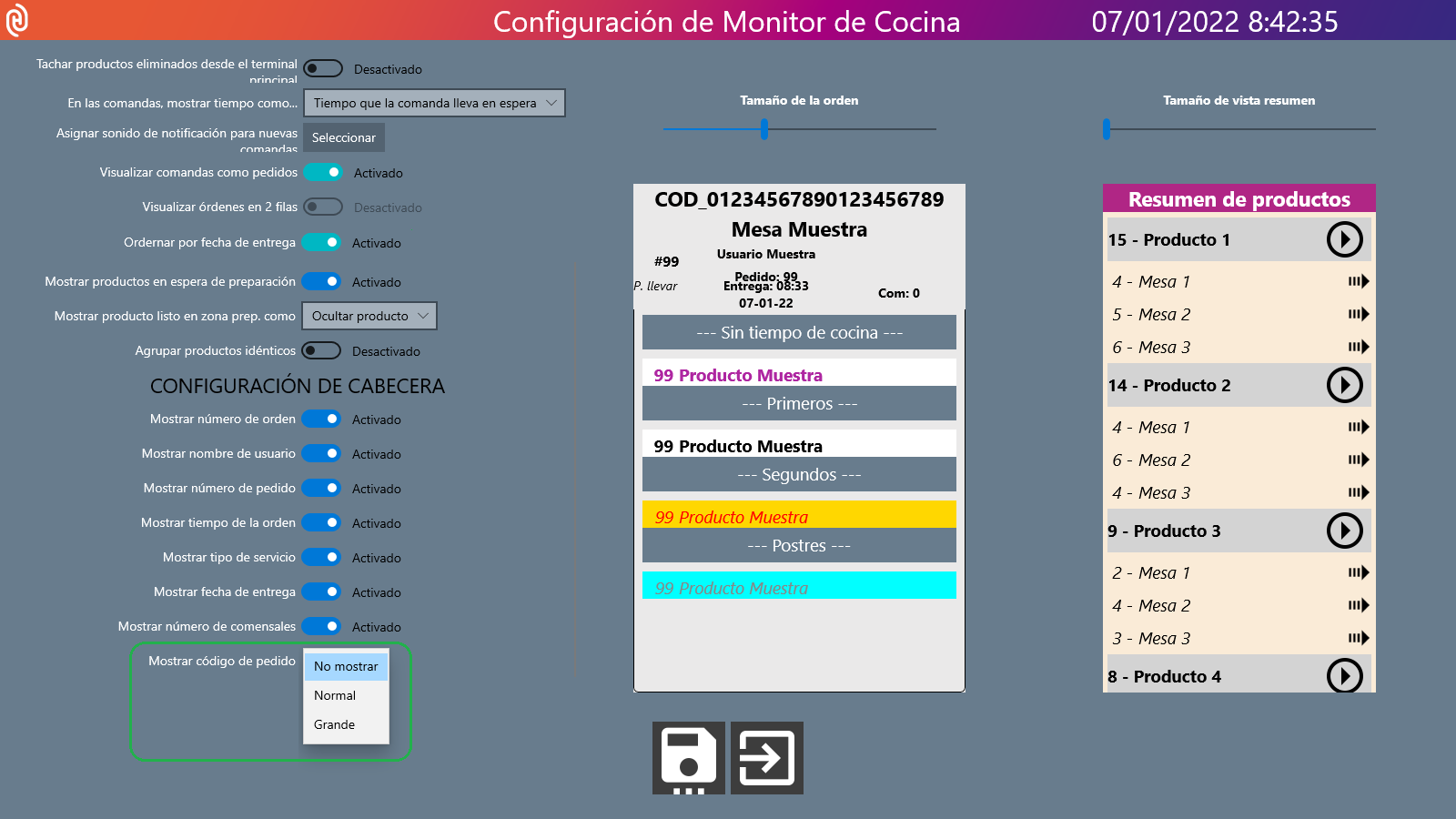 Elegir cómo visualizar el resumen de productos en el monitor de cocina