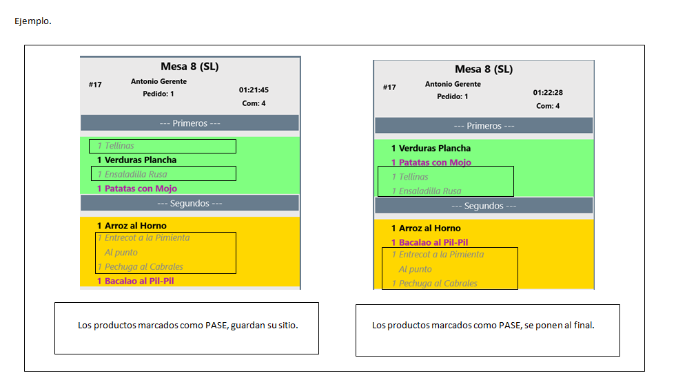 El KDS permite o poner al final de la orden los productos marcados como pase, o dejarlos en su sitio. Es configurable.