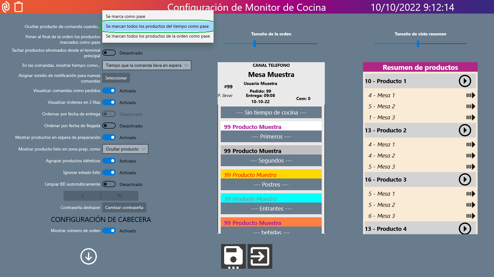 Por favor, indica en la opción Mostrar producto listo en zona prep. como si deseas que el producto se oculte o si deseas que el producto cambie de color cuando está listo.