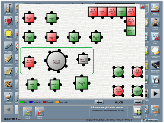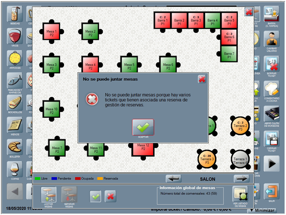 Por otro lado, no puedes juntar mesas entre sí, que previamente han sido reservadas u ocupadas por reservas. Lo que puedes, si hace falta, es juntar una mesa reservada con una o varias que no lo están.