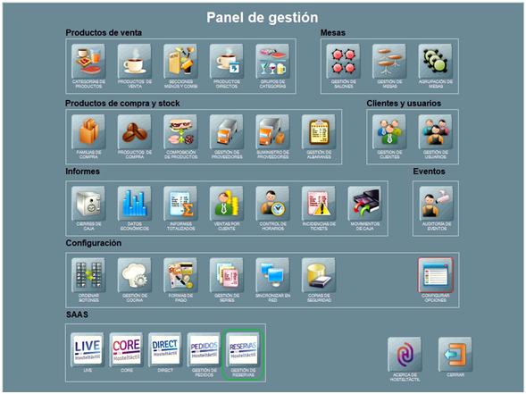 • Para activar Gestión de Reservas ve a Panel de gestión / SaaS, y pulsa sobre el botón de Gestión de Reservas.