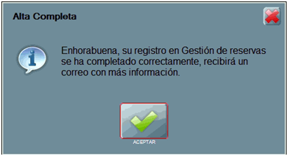 Si el alta se ha podido completar con éxito muestra el siguiente aviso.