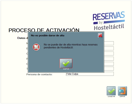 Ten en cuenta que si tienes reservas pendientes no podrás tramitar el alta.
