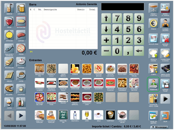 Las reservas realizadas a través de internet con CoverManager o Restoo aparecen directamente en Hosteltáctil® con información relativa a: código de la reserva, nombre del cliente, mesa reservada y número de comensales, etcétera.