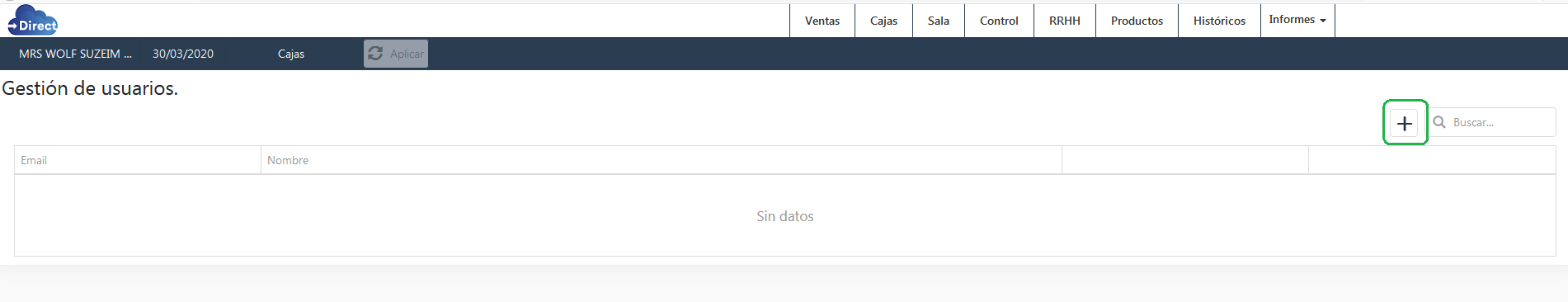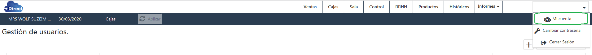 Además, sólo el usuario con perfil administrador dispone de acceso a la gestión de cuentas, para proceder a altas de más usuarios, y así poderles asignar otros locales (del grupo).
