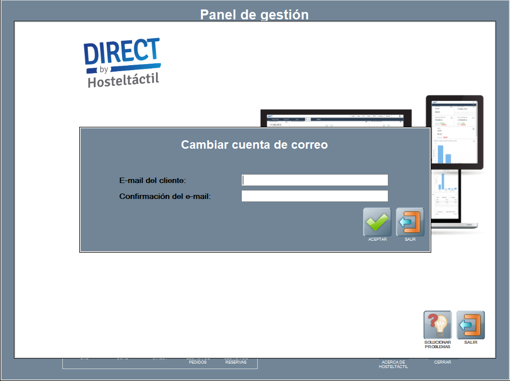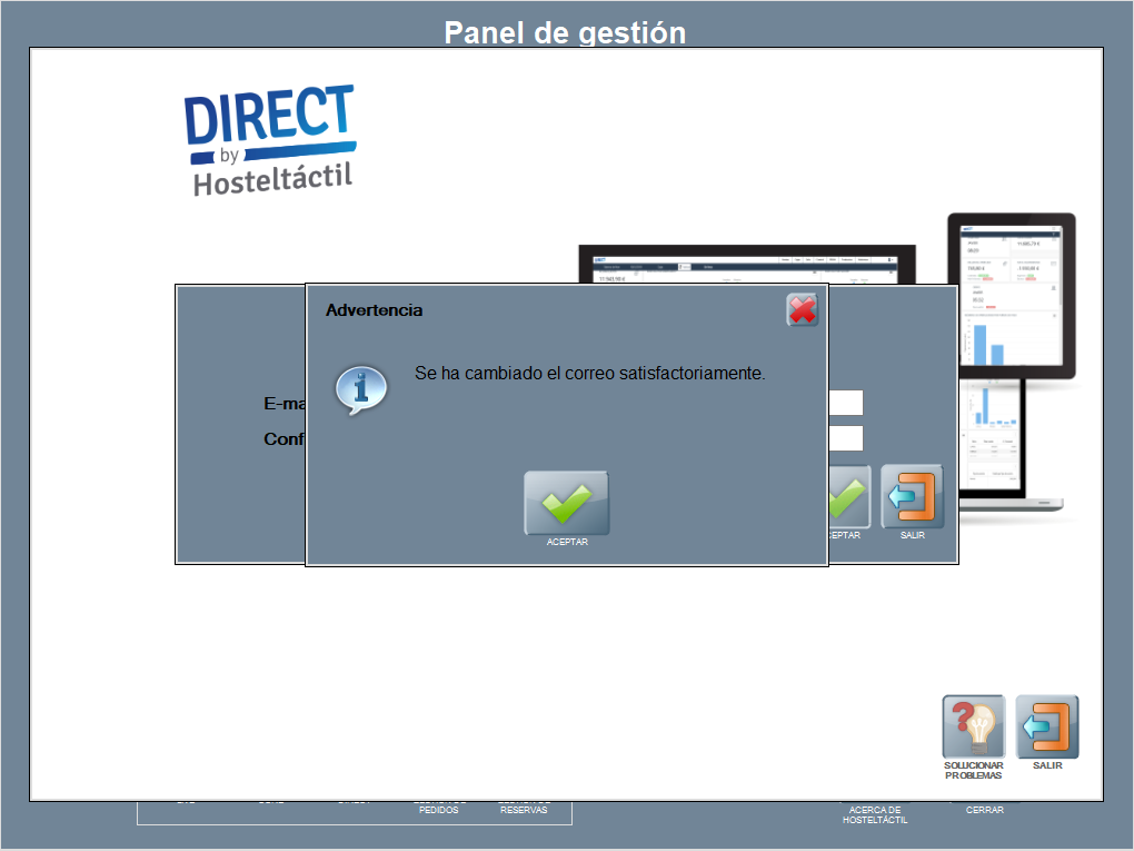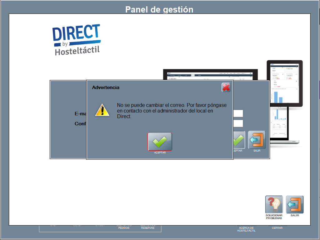 En el caso de que exista más de un usuario para acceder al servicio de Direct, no puedes cambiar la dirección de correo electrónico por este medio, tienes que contactar con el administrador del local.