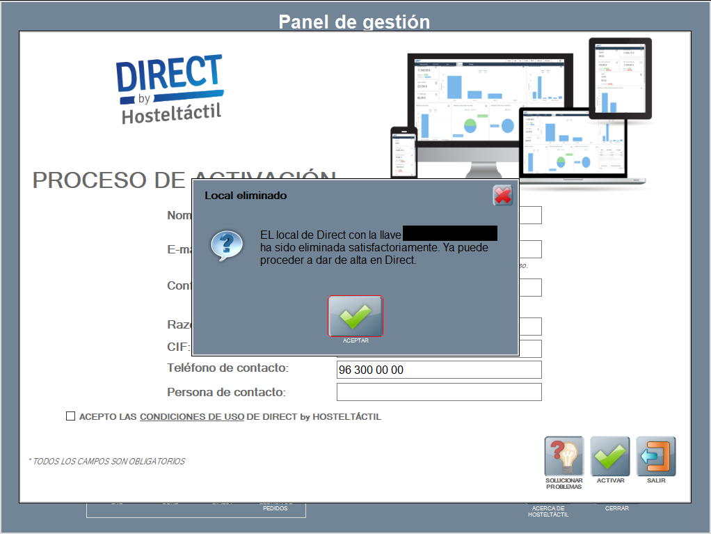 Antes de realizar el proceso de activación, por favor, asegúrate de que la llave de licencia no ha sido asociada a ningún local con anterioridad.