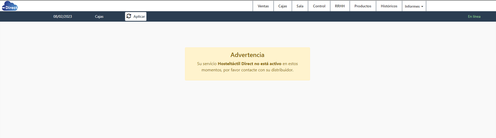 Si al acceder a tu panel de Direct se muestra este aviso de Advertencia, por favor contacta con tu distribuidor.