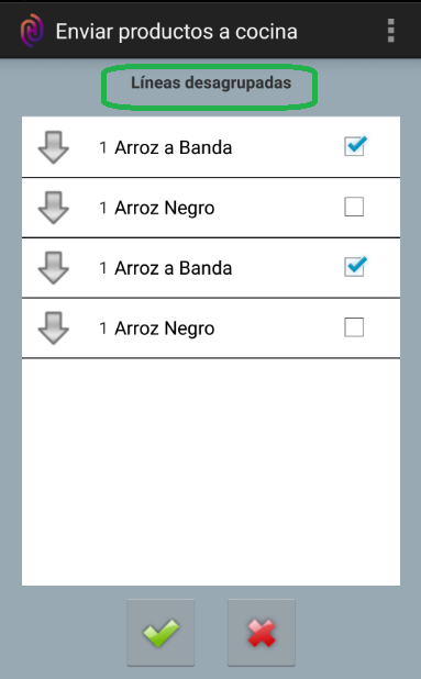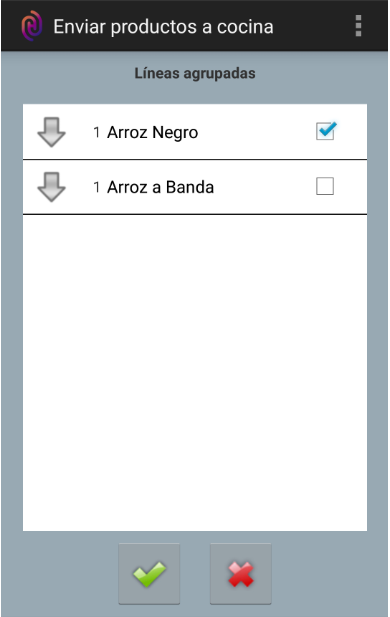 Luego, marca los productos que quieres enviar a cocina y ACEPTAR.
