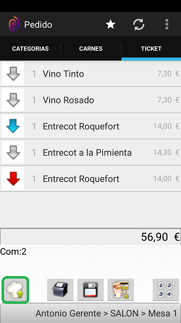 Tras el envío a cocina (manual o automático al validar), los iconos cambiarán su color, para indicar cuáles se enviaron y cuáles no.