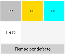 En el ejemplo, tenemos 3 tiempos (PR, SG, PST; primeros, segundos y postres), por lo que tenemos esas tres opciones, una cuarta que es sin tiempo de cocina (SIN TC), y finalmente la opción de ‘Tiempo por defecto’