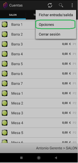 Para ajustar las opciones, inicia sesión y, en la vista inicial (la de Cuentas), despliega el menú principal y pulsa sobre OPCIONES .