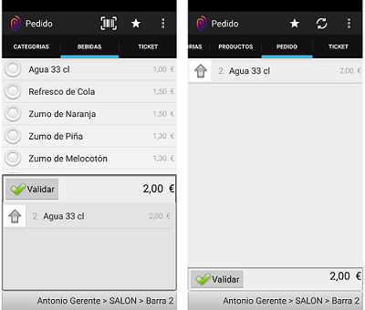 En esta pestaña es donde se irán anotando los productos elegidos por tus comensales. Desde aquí, puedes Validar el pedido o realizar modificaciones sobre el mismo.