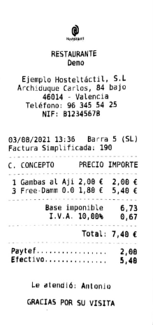También puedes realizar varios pagos PAYTEF sobre un mismo ticket, tantos como necesites.
