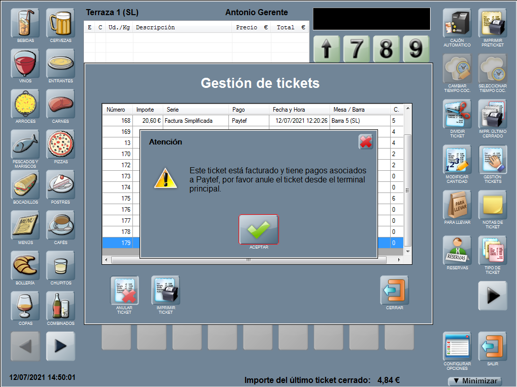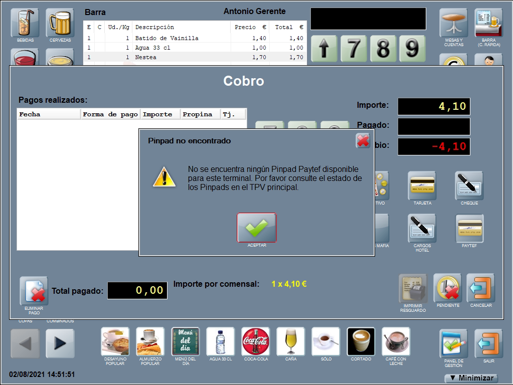 En el caso de que no haya ningún terminal de pago disponible, Hosteltáctil® informa del problema.