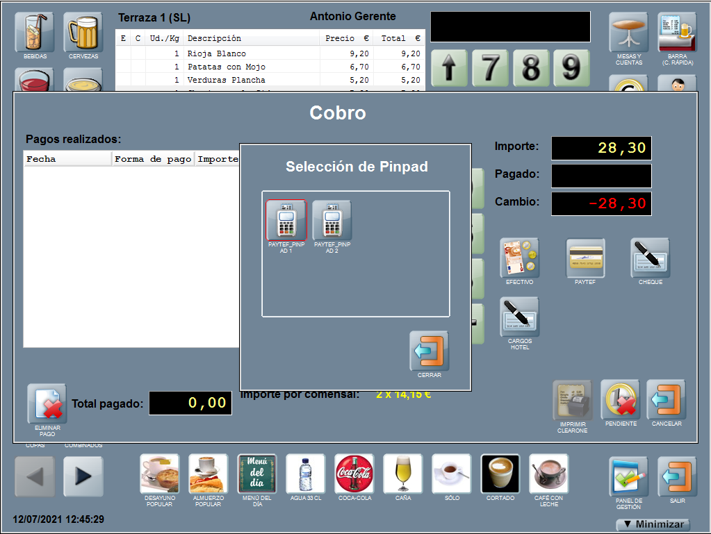 Si hay varios pinpads conectados, tras pulsar la forma de pago PAYTEF se muestra una pantalla de Selección de Pinpad con el nombre de todos los pinpads disponibles.