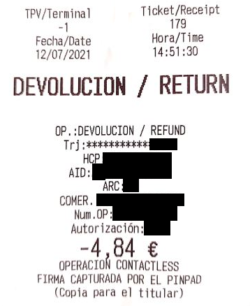 • Permite imprimir ticket: si se activa permite imprimir tickets que vienen de Telecomanda® (wink) , por la impresora del pinpad.