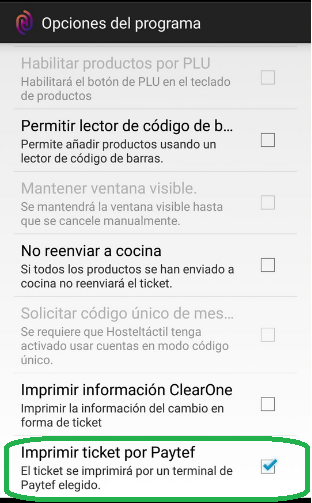 Si tienes activa esta configuración Imprimir tickets por Paytef, el ticket se imprimirá por la impresora del pinpad elegido.