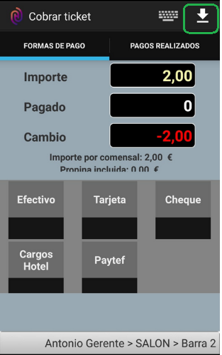 Pulsa el botón COBRO para gestionar el pago de la cuenta.
