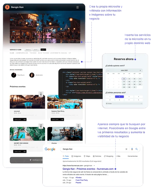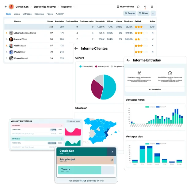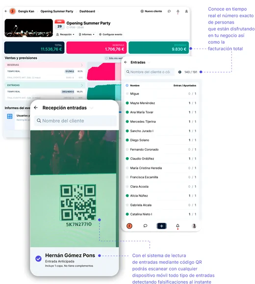 Te facilitará todas las herramientas que necesitas para gestionar tu negocio dentro de una única aplicación: acceso a pasarela de pagos para venta online, recepción de reservas, control de espacios y mesas, gestión de equipos y RRPP, informes automáticos y analítica, CRM y base de datos privada.